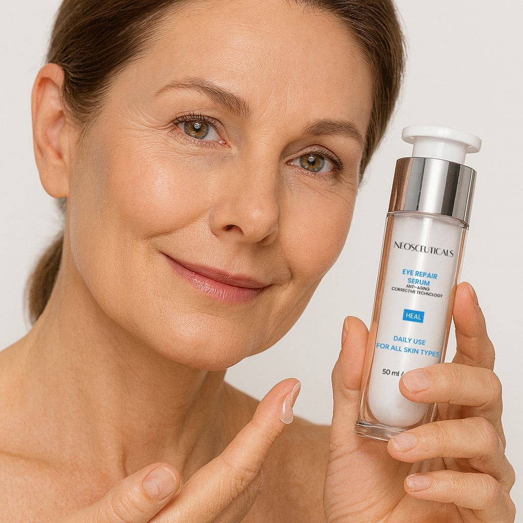 Revitalize and brighten delicate under-eye skin with our Eye Repair Serum, hydrating and firming for a refreshed, youthful glow.